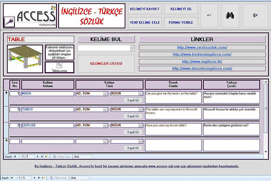 Access'le hem de başka programlarla yapılmış İngilizce -
