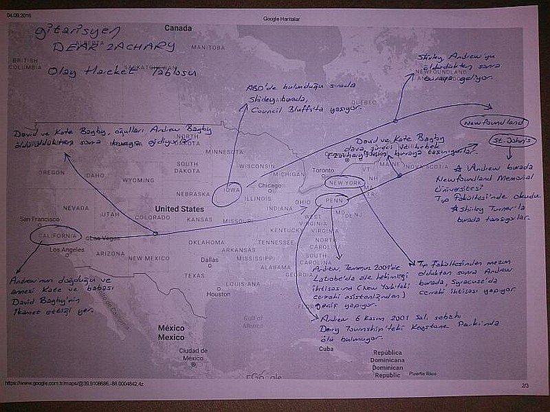 araştırmalar yapıyor, notlar alıyor, haritalar