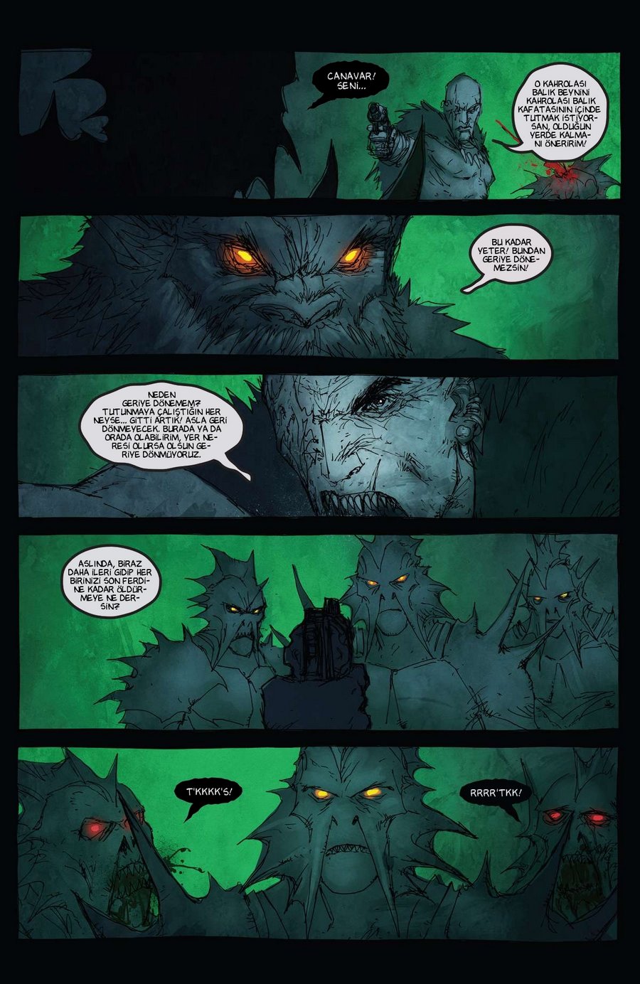 zehirlenmiş, mutasyona uğramış canavarlar ortaya çıkmış,