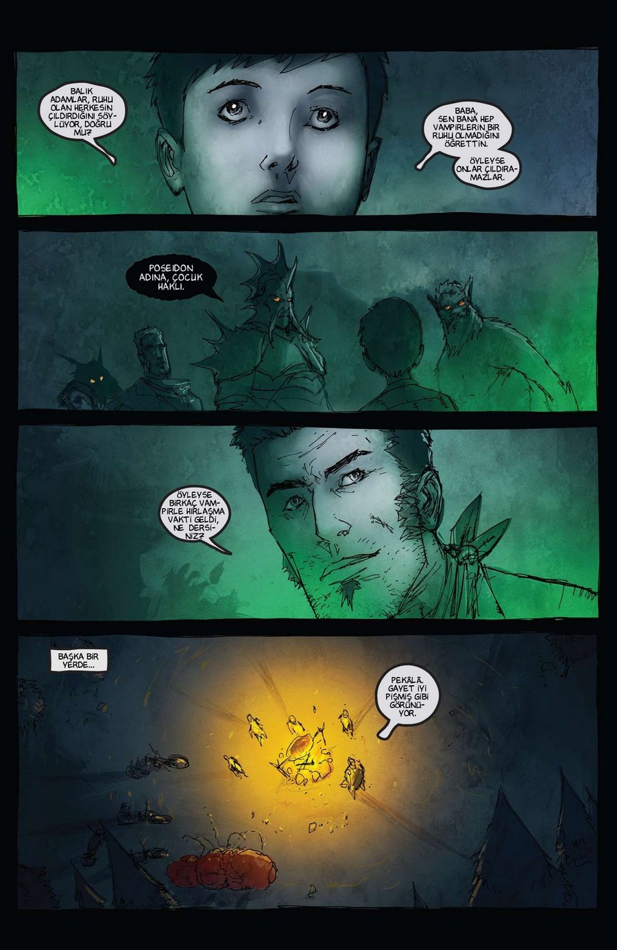 konuşurken denizden gelen "Solungaçlı Adamlar"