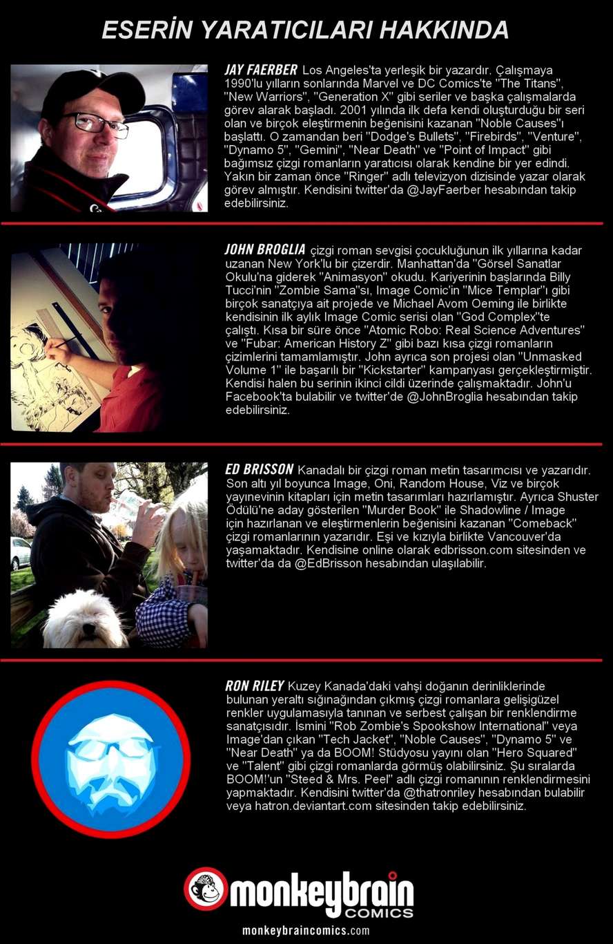 Çizgi romanın arka iç sayfasındaki “Eserin Yaratıcıları