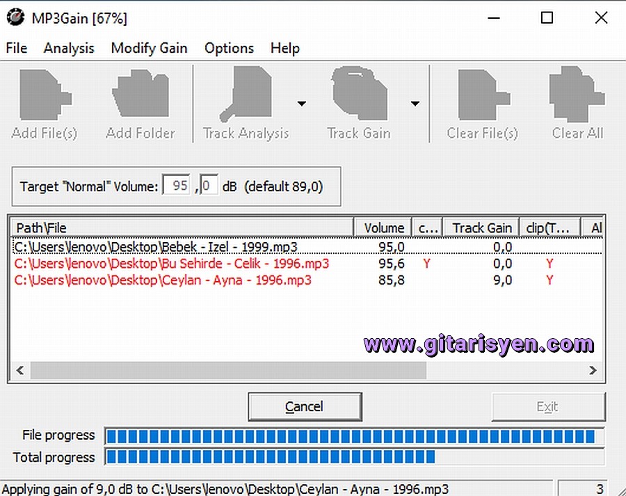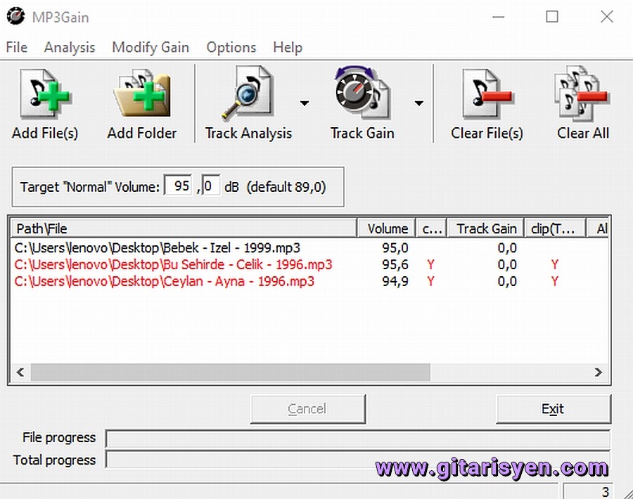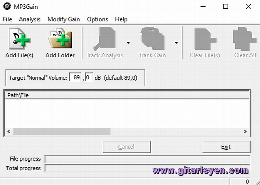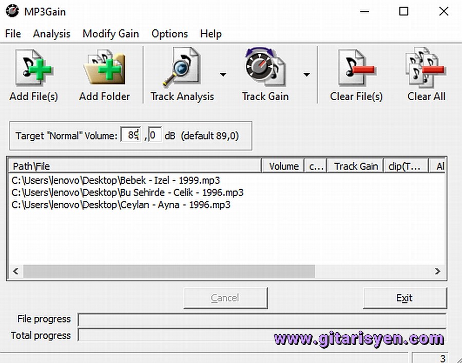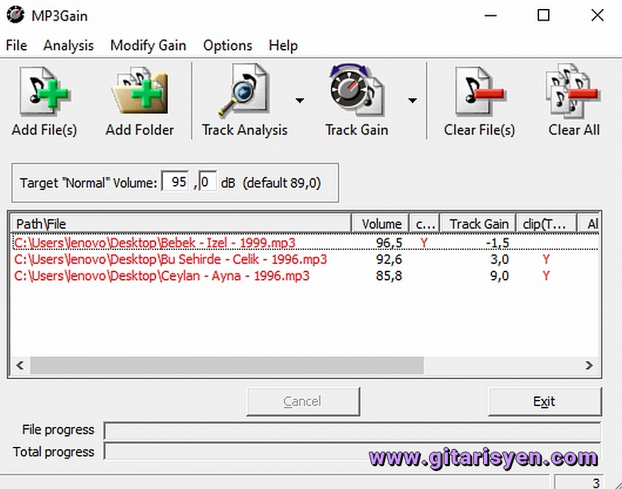 File progress kısmı "Track Gain" kısmına